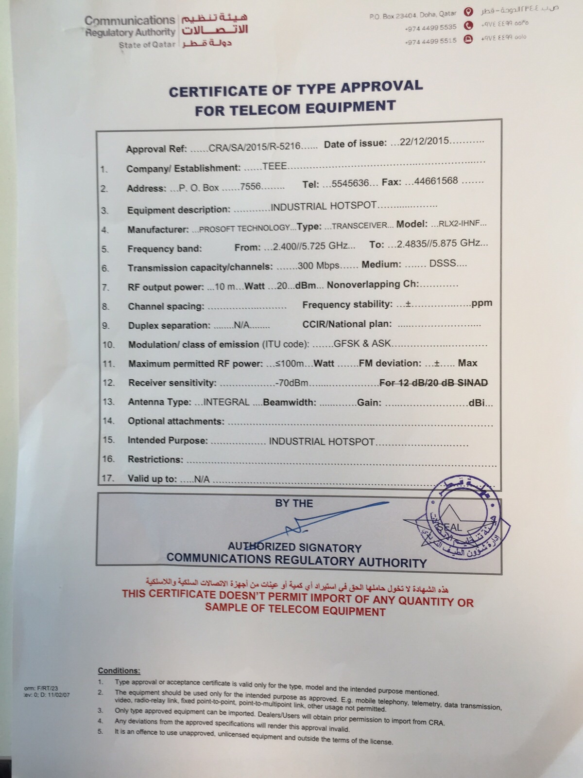 Country Approval - Qatar 348,50 kB Last Modified 08.10.2019